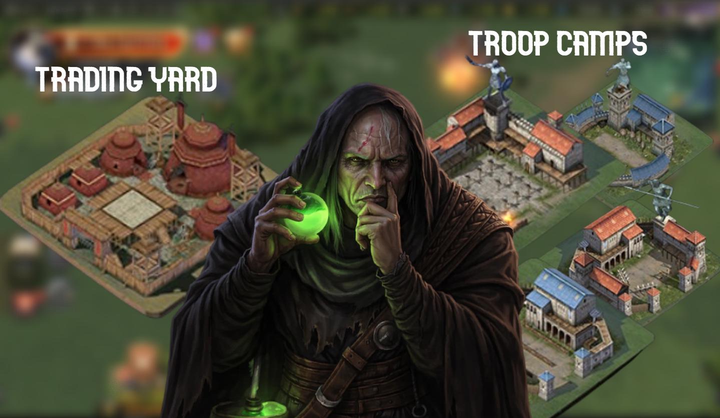 Unlike troop camps, the Trading Yard does not generate troops.Instead, it increases the points generated by the Clan Castle: