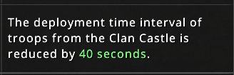 This building grants a random buff that affects how fast Clan Castle troops attack. In other words, it increases the speed at which troops gather and deploy to attack NPC buildings.