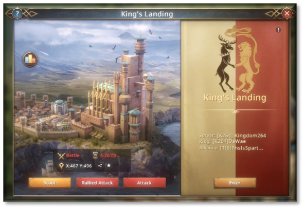 Then, during the afternoon, when hopes had faded, an enemy castle appeared. In King's Landing, right in front of her was a depleted castle with a power exceeding 2 billion. That player was holding King's Landing alone.