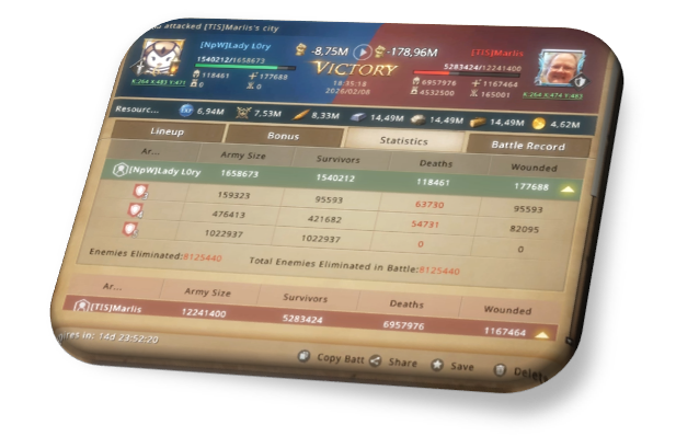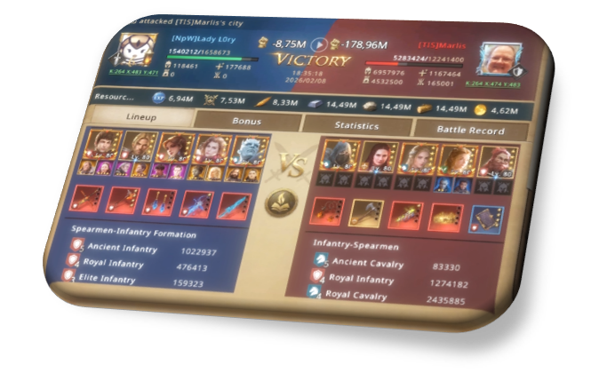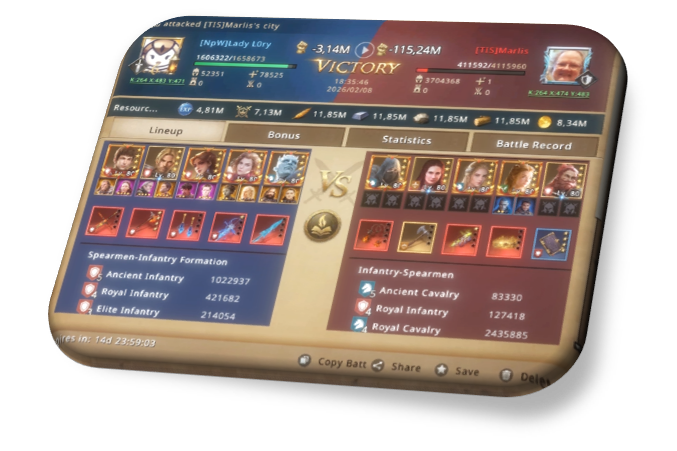 The scouts' report left Lory with a bitter taste in her mouth. He was a very strong infantry player. He had the same formation as her and many more T5s than her. There were 1.4m infantry troops but 1.1m T5s. A head-on clash could have been fatal. Her army size, even with a 75% buff, didn't exceed 1.6m, and that wall was very strong. The chances of failure were more than 80% according to her calculations.