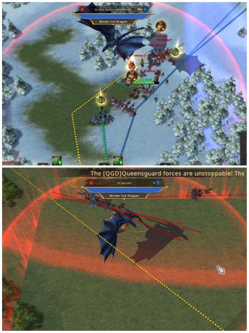 Finally, because of all the hit and run operations led by QGD, DxD focused on the Flaming sun dragon allowing QGD to escort for the first time the Winter Ice dragon to their base, a great achievement for the new season.