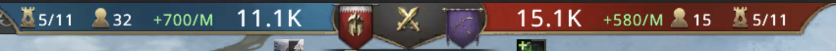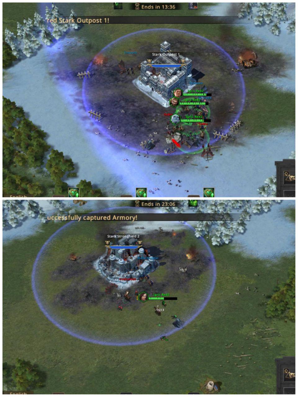 Everyone races but DxD gets to the middle of the map faster and gets its hands on both Armory and Hot Spring. QGD isn’t letting it slide though as fighting breaks out rapidly at the latter. Both Stark outposts are taken by QGD, both Stark strongholds too and even Greyjoy stronghold 2. For DxD, as said they have Armory and HS but they also have control of Greyjoy stronghold 1 and both Greyjoy outposts.