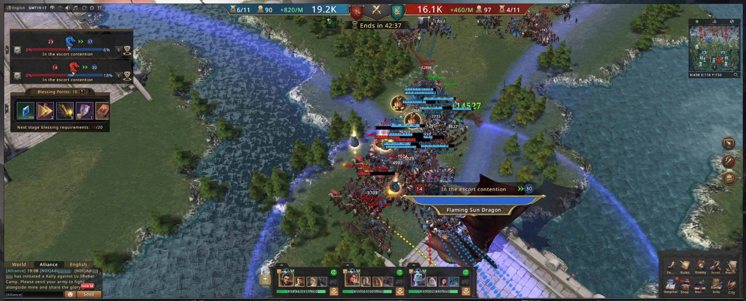 After clearing the Stronghold and gathering enough numbers, it’s time! We roll back toward Hot Springs. Hospitals across the alliance must already be crying for healing speedups.