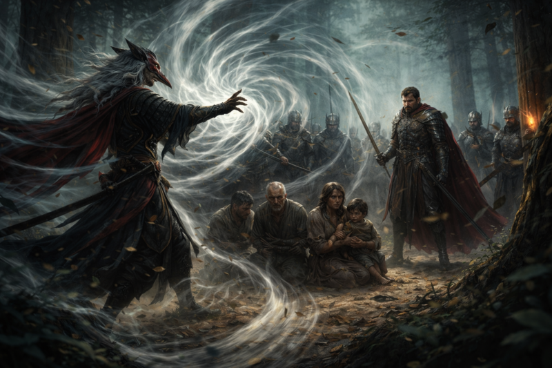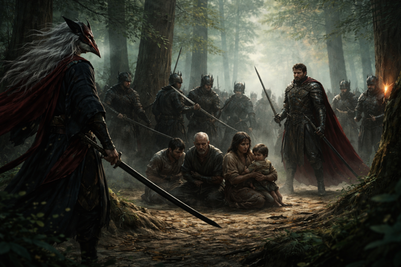 Far beyond the trees the distant clash of battle still echoed from the burning village. But here in the forest clearing the air felt strangely still.