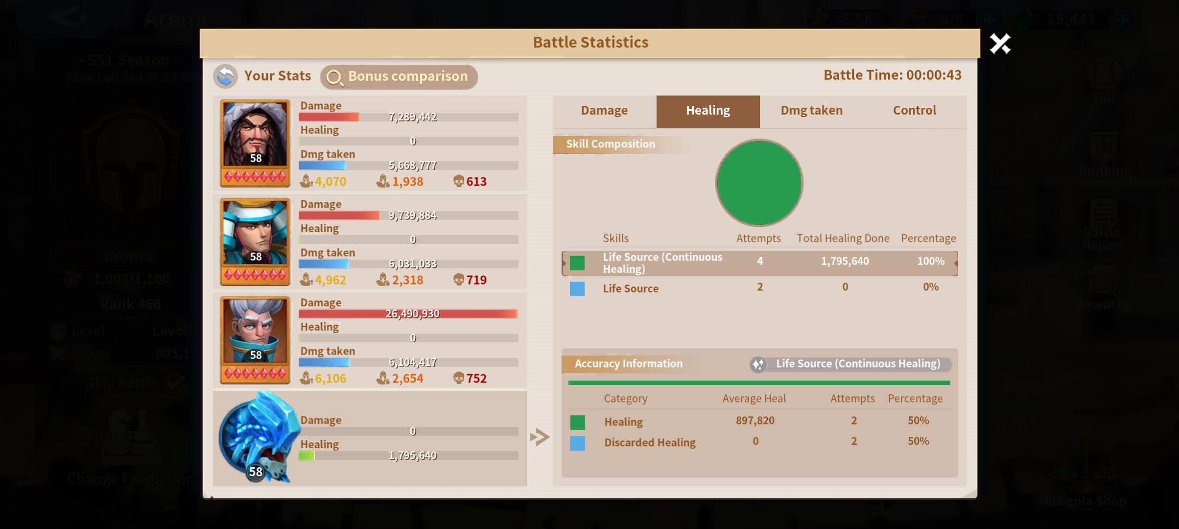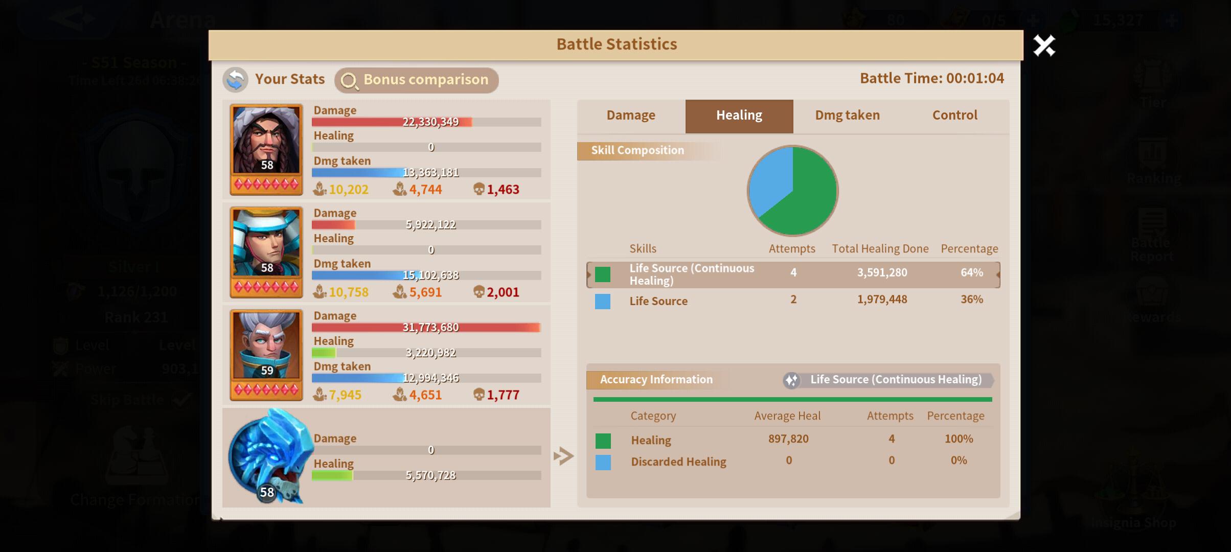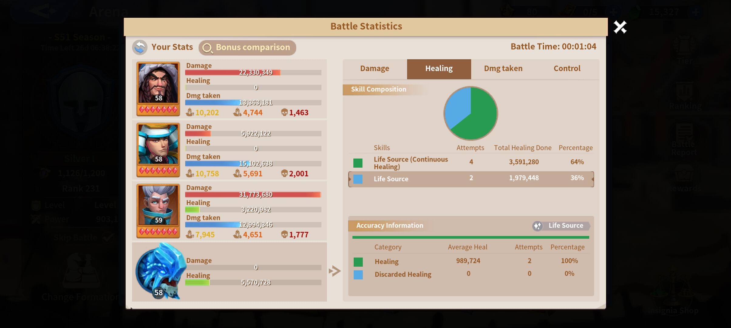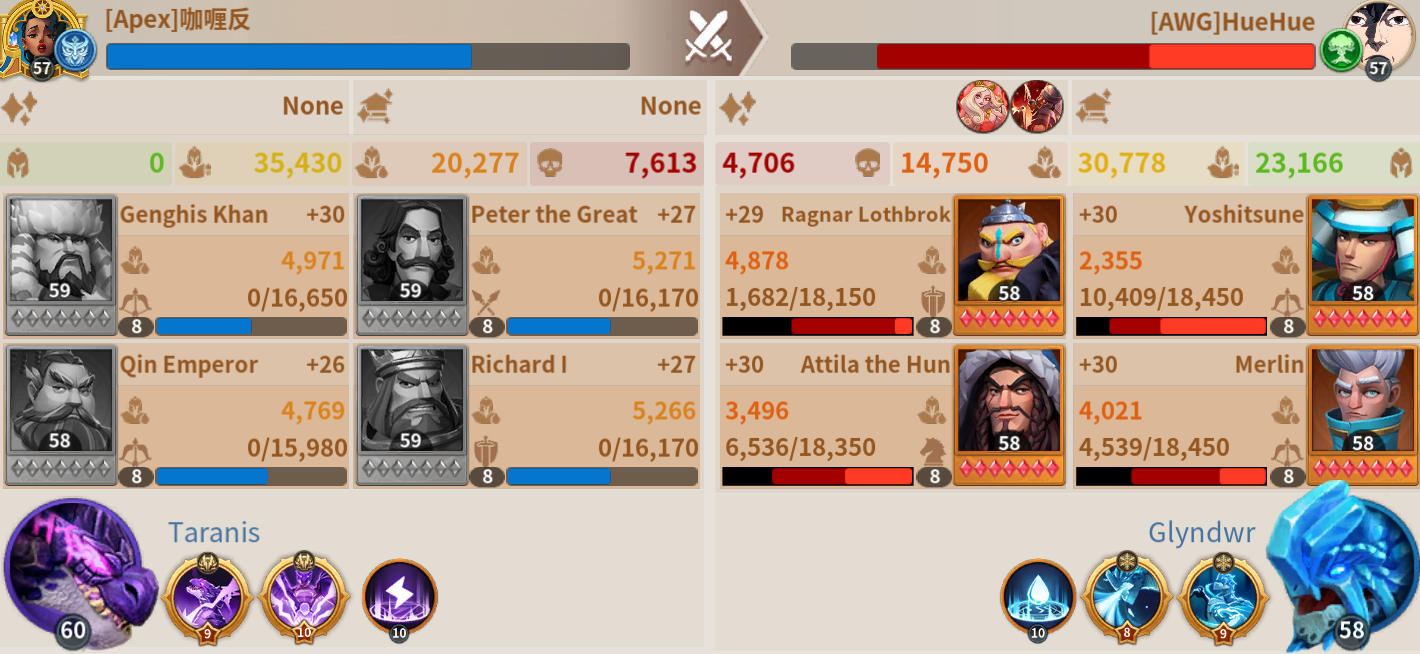 The fight ended up with my team taking the win, accounting for the little sustain I received and the crowd control effects of freezing and technology for cavalry that let's Atilla stun, it was still a hard fought battle.
