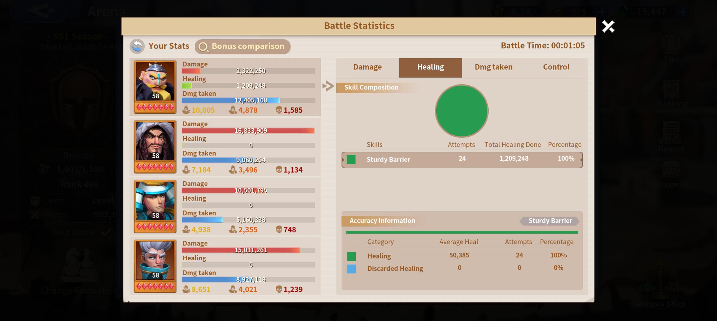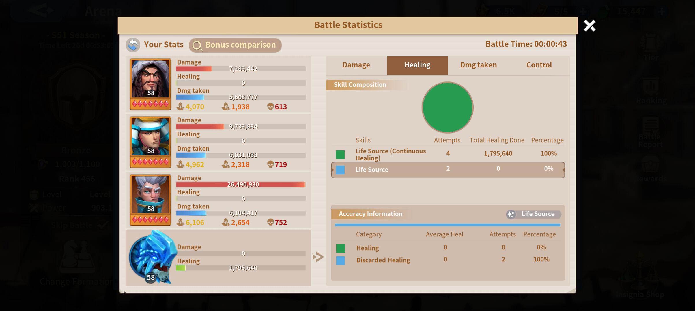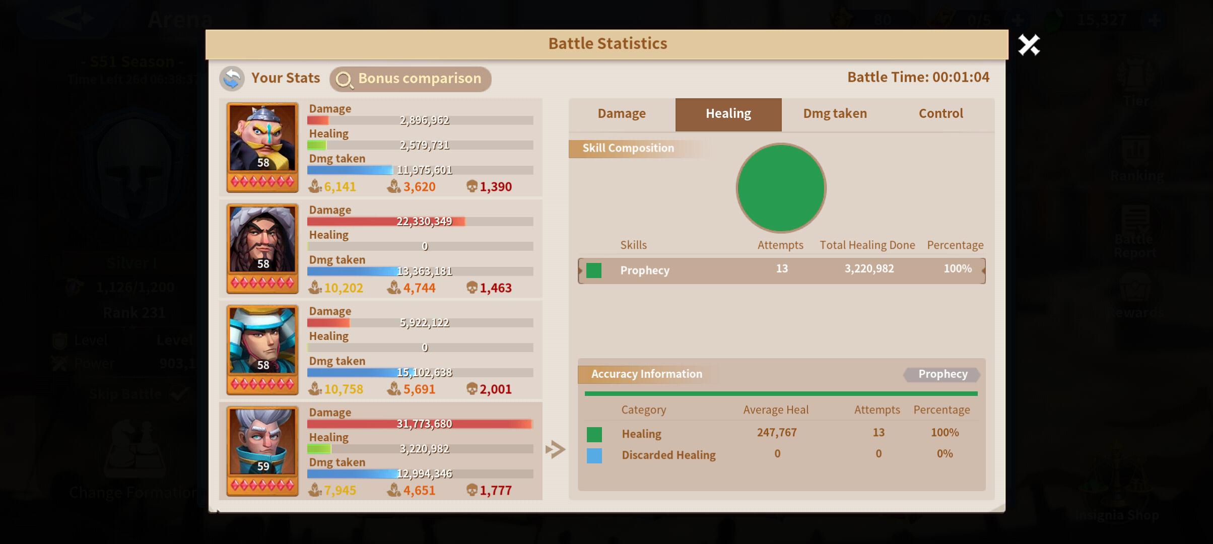 The fight ended up with my team taking the win, accounting for the little sustain I received and the crowd control effects of freezing and technology for cavalry that let's Atilla stun, it was still a hard fought battle.