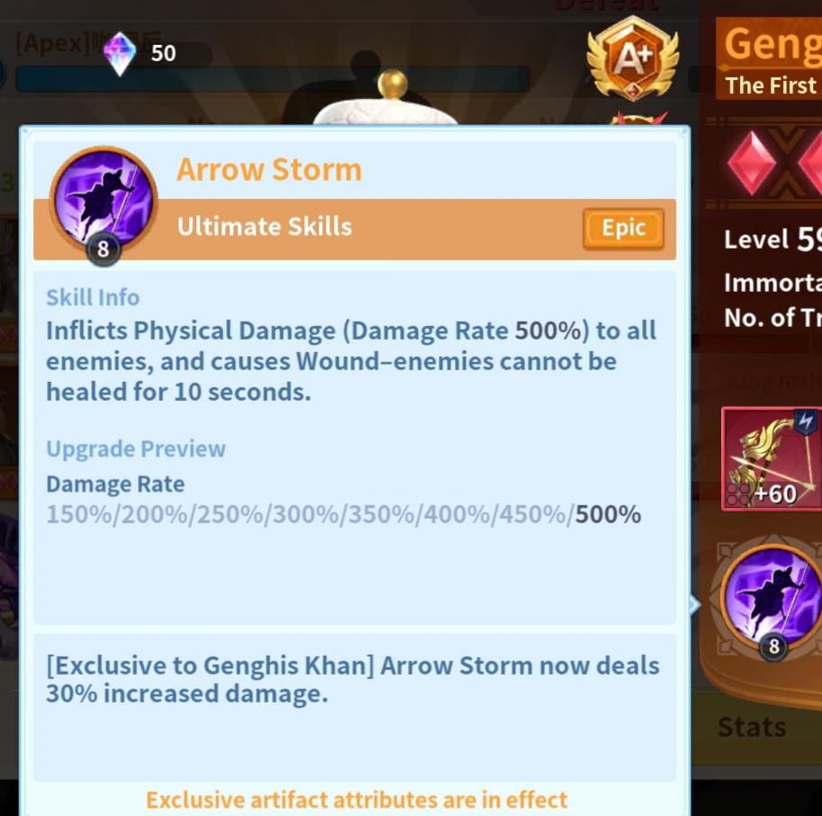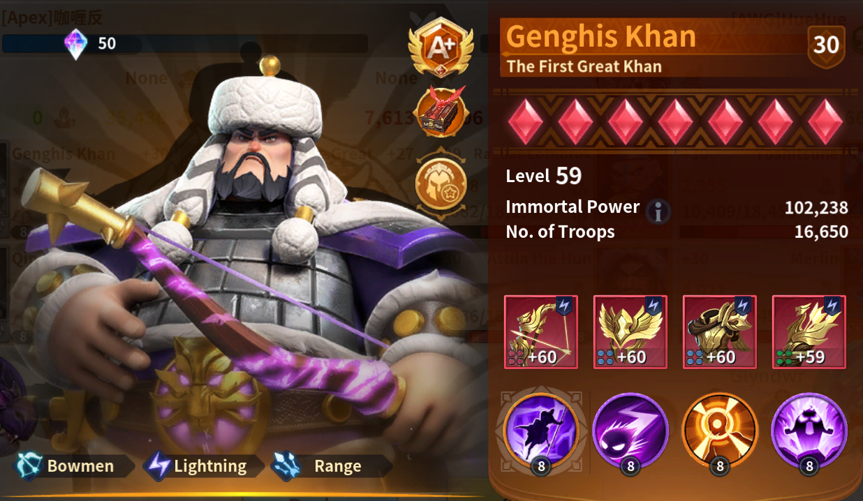 Today I will be discussing a combination that is relatively new, but few in application. Two wound immortals (cannot heal), Genghis Khan and Qin Emperor. The goal of a team with this combination is to 100% deny any kind of healing source while adding a devastating damage aspect to it. This is primarily done in a lightning march, accompanied by either two tanks or one tank and one attack frontline immortal.