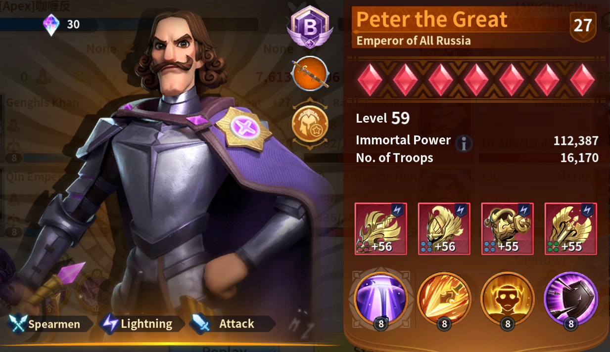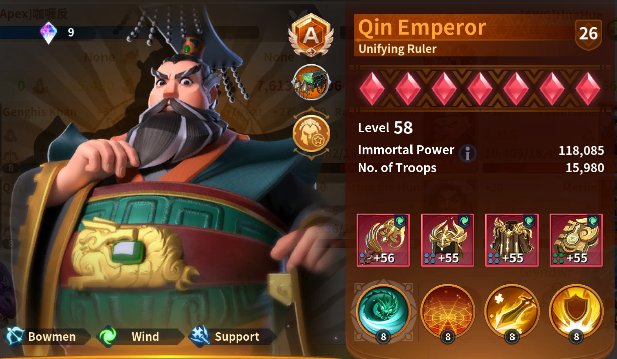 It is a bit tricky, because wound is in fact a counter to healing; so if the enemy has no healing in the first place, does it even matter? I think regardless if the enemy team has any sustain or not, Genghis Khan dealing damage with the added effect of wound is still very reliable. You get the damage and guranteed anti-heal. On the other hand, you can also equip Qin Emperor with support exclusive skills, giving you more versatility than having just Genghis Khan as a damage dealer. The ideal march has at least one support in the current meta. One tank, usually Yi-Sun Shin, a damage dealer frontline like Alexander The Great, or another frontline tank, along with one or two support backline immortals. The double wound may be applicable to more than just a lightning march, the possibilities are endless!