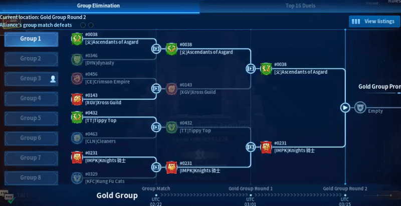 - On the left side, Server 38’s Ascendants of Asgard and Server 231’s IMPK defeated Server 143’s XGV and Server 432’s TT. On the right side, Server 456’s CE and Server 329’s KFC defeated Server 346’s DYN and Server 463’s CLN, respectively.