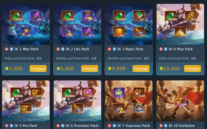 The GTArcade Points Shop now includes several new bundles across free, standard, and high tier rewards. Three free bundles were added: a daily gift with 40 Gems, a Heart of Norheim, and small AP and SP potions; a weekly gift with 100 Gems, speedups, and a Troop Recall; and a monthly gift with 500 Gems and a 4 hour Protection Shield. Point bundles were also introduced, including daily, weekly, and monthly packs costing 1k, 5k, and 10k points that grant 400, 500, and 1k Gems respectively, with the monthly pack also including Alchemy Stones, Territorial Teleports, and a Kingdom Contract. Higher tier packs cost 10k, 50k, and 100k points and provide 1k, 5k, and 10k Gems, with the top monthly pack also granting 20 Crimson Moonlight and 20 Territorial Teleports, alongside additional specialty packs such as a 100k daily cosmetic teleport bundle and a weekly 50k pack that gives Equipment Forging Random Chests.