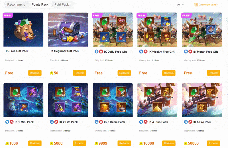 For free to play and low spenders, Gems remain the most valuable resource available in the shop. With an average of 1,444 points earned per day, players can accumulate at least 43,320 points per month, not including additional points from the roulette. The most efficient purchase is the IK 1 Mini Pack, which costs 1,000 points and grants 400 Gems daily; over a month, players can buy it 30 times for 12,000 Gems. With the remaining 13,320 points, players can purchase the IK 3 Basic Pack for another 1,000 Gems and 5 Alchemy Stones for artifact stat rerolls, allowing players to earn at least 15,100 Gems per month for free while still having points left over.