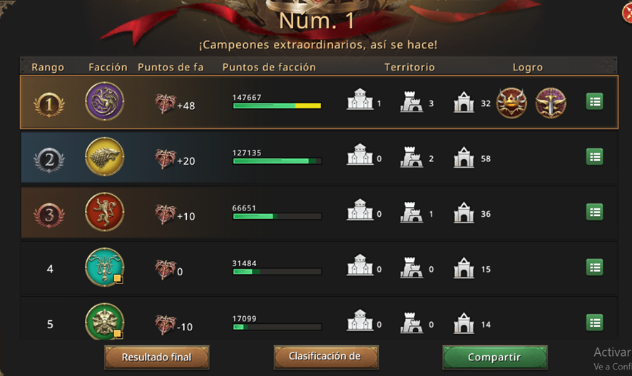 But the enemies wouldn't have time to organize, so the second medal, for holding Glory Castle, went to our Lord's faction, and the final victory was secured in the last minute.