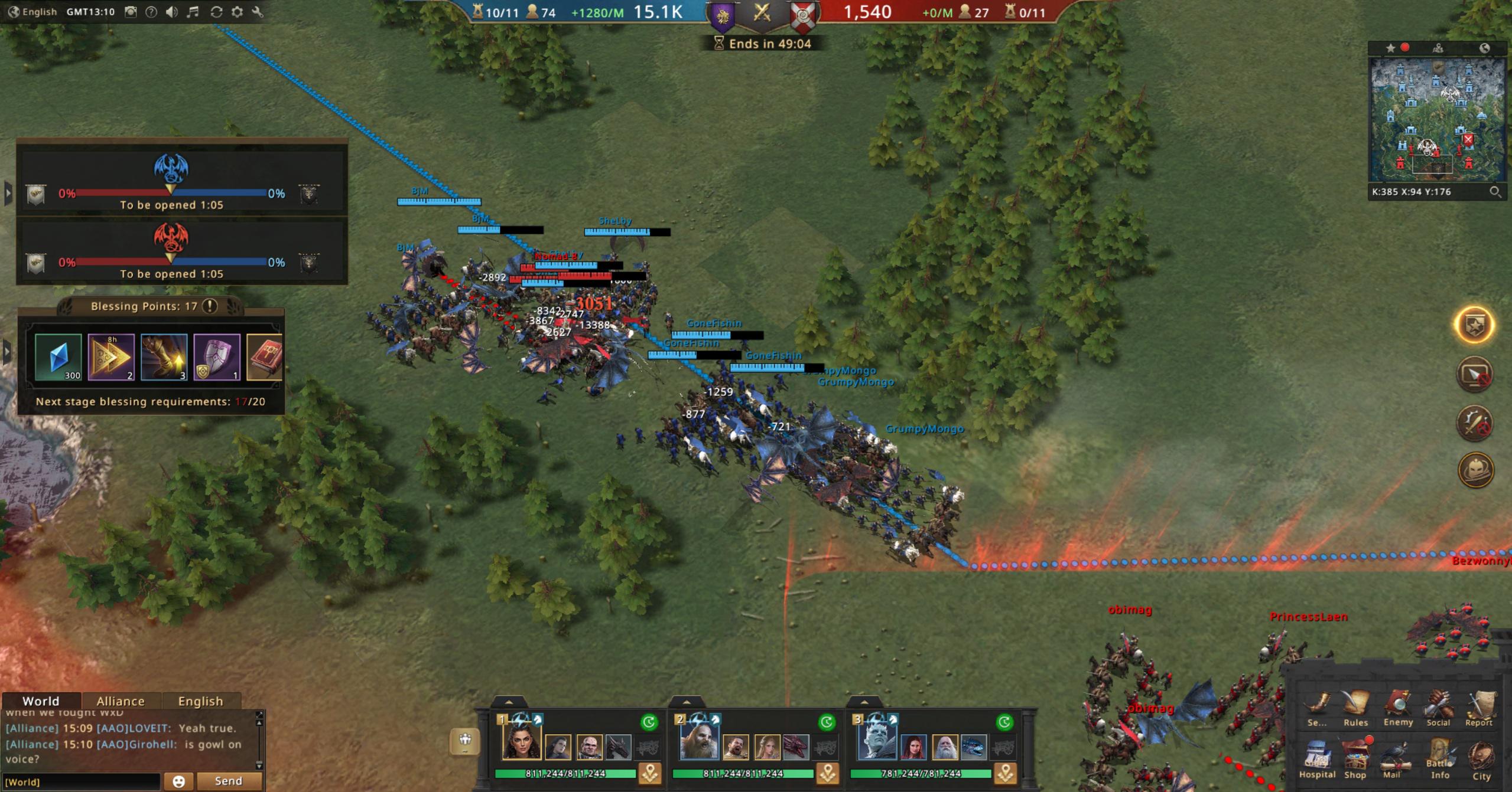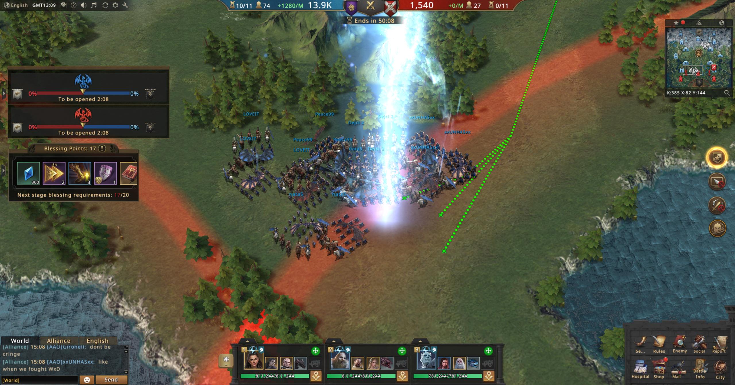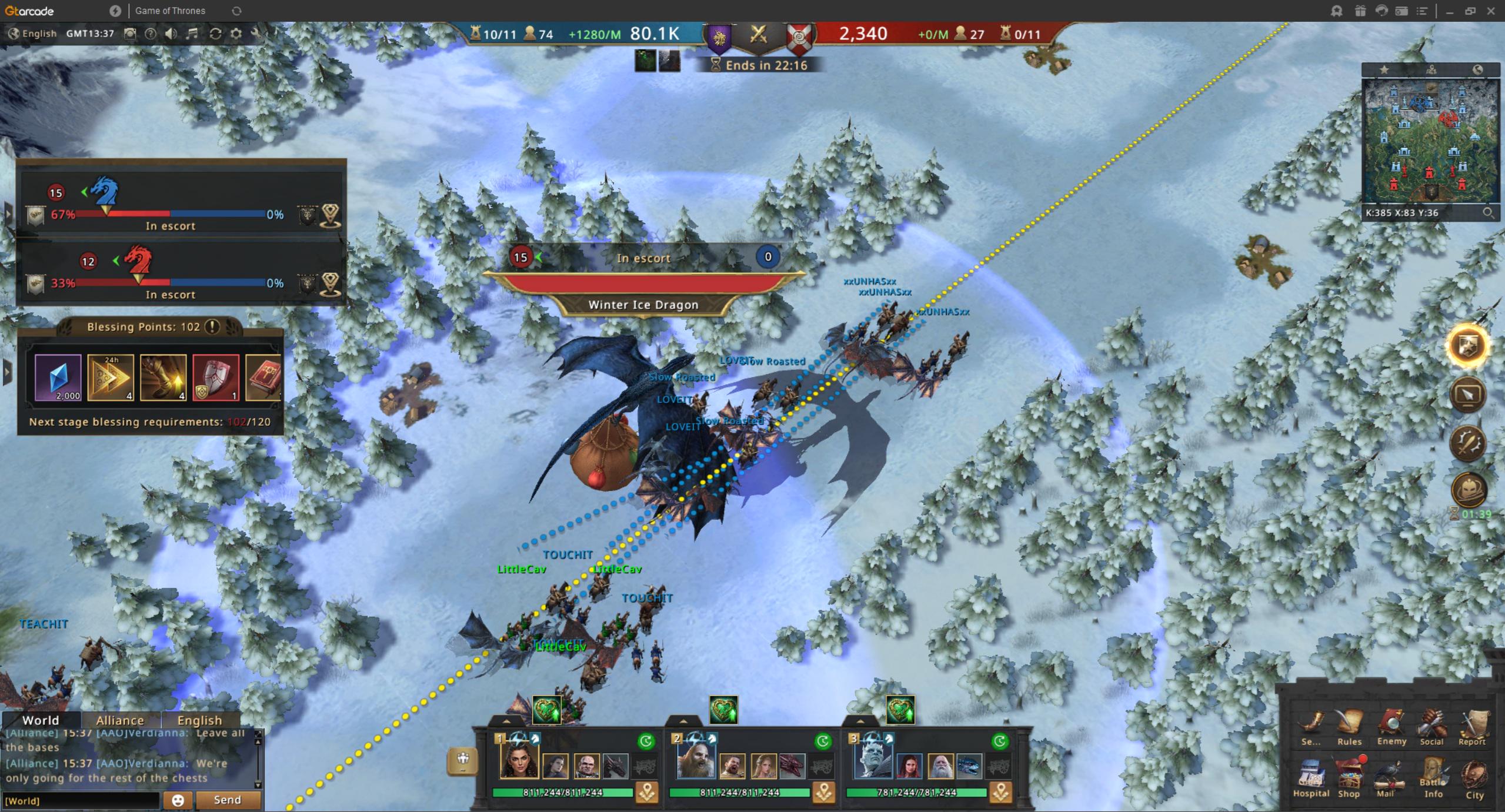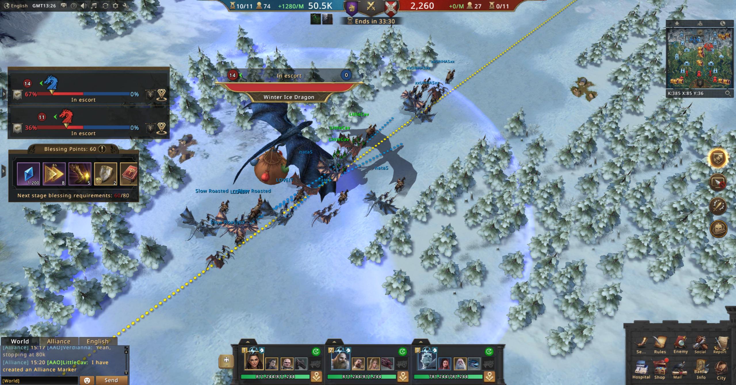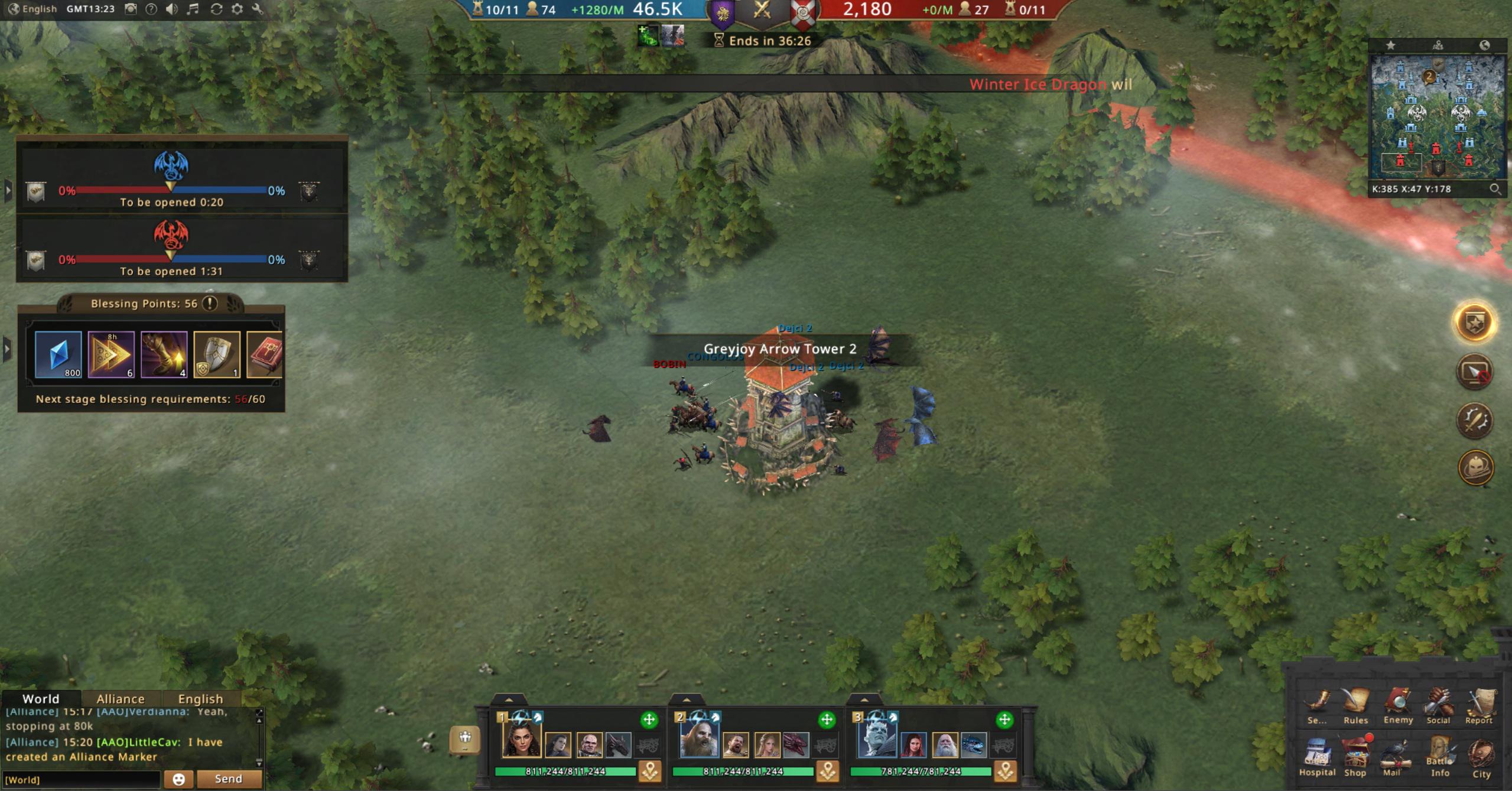If that’s the case, we might as well make good use of the match. The goal isn’t simply to win, it’s to hit bigger objectives: reach 80k points, collect 120 Blessing boxes for the alliance rewards, and then disband so the other side can still get something out of the game.