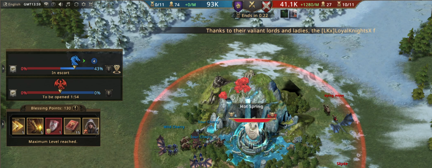 Not long after that the Blessings counter reaches 120 as well. With both goals completed we abandon the map so LKx can collect some points before the match ends.