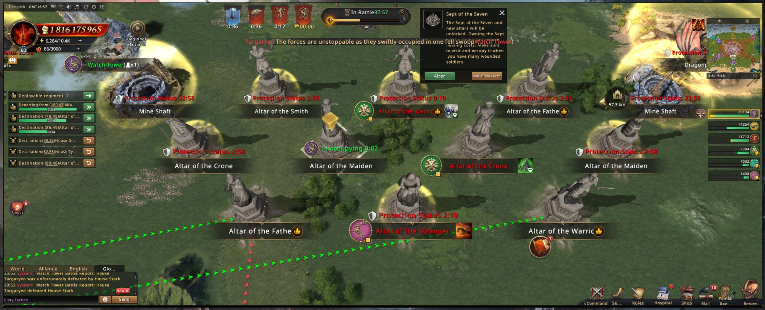 Since I’m not really needed anywhere, I start picking up Altars and even both Septs of the Seven. Our Sept is "safe" to take with a few troops, so I don’t even need to lock a full march there. The NPC Sept is trickier though, because those cheeky clones sometimes wonder off in that direction and someone has to sit there with an actual lord march to defend it.