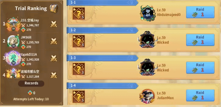 Pinnacle Trials are extremely similar to the Glorious Challenges except that players only get 1 attempt a day and cannot purchase additional tickets. The rewards are significantly better, too. There are five levels, and it offers gifts of 25 Random Immortal Fragments, 30 Lunar Grace Pavilion Fragments, and 10 Tokens of Light. After completing the levels, you can raid them to get additional rewards. The later levels are significantly more difficult since the enemies have legendary skills.