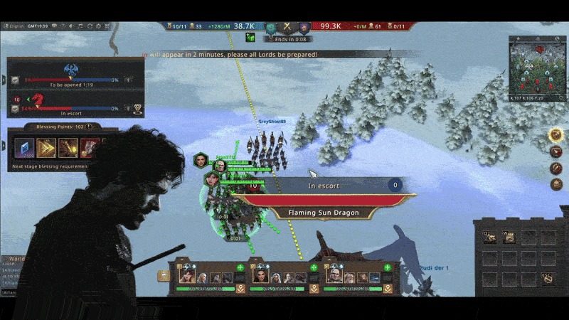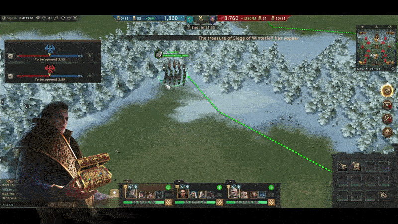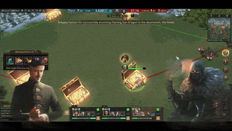 We were largely successful in collecting the boxes. Some of our ambitious members even collected the boxes in enemy territory. However, as the game progressed, the enemy leadership noticed that we were stealing their rewards. They dispatched their top commanders to hunt us down. However, due to my speed, which was unrivaled in this match, I collected several treasure boxes before they could defeat my armies.
