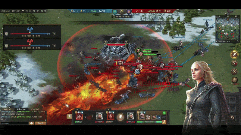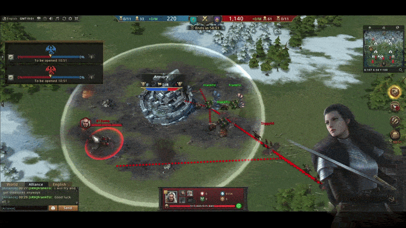 I was faster than both the enemy and my alliance members. All 3 of my troops began to capture the armory. Immediately three of the enemy players contested for the armory and began to attack my army. In 10 seconds the enemy decimated my third army. And the other two armies were killed just as quickly.