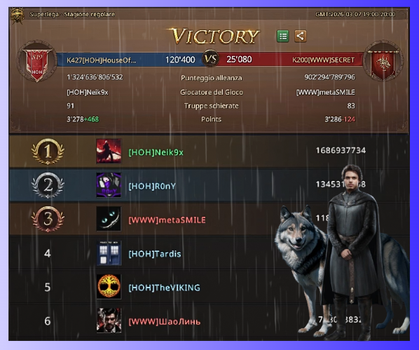 If for many this match was decided even before its beginning, WWW was showing great tenacity and fighting spirit. The rival faction, despite being behind in score, fought for the capture of at least one of the two dragons in an intense way, this would certainly not have guaranteed them to close the gap in score with Neik and his teammates of HOH, but they were fighting with great determination.