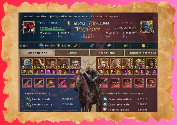 Without hesitation, his BoB comrades immediately sent as many reinforcements as possible to ensure their ally remained firmly in command of the City. Neik and his comrades decided to wait in the initial phase of the fight; the HOH member knew the rival’s strength and his Inf troops, which would counter their Spears, and decided not to take unnecessary losses, waiting to see how the situation evolved.