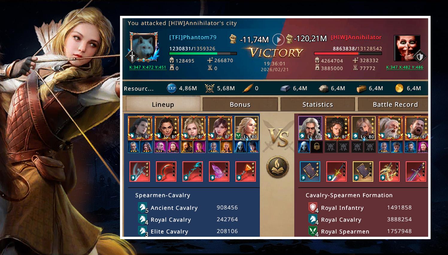 This time, Annihilator no longer had his wall to defend his fortress, so my cavalry had a clear path to advance into the castle, bringing destruction and chaos. More than 8 million troops were completely erased from the map in that second and third impact.