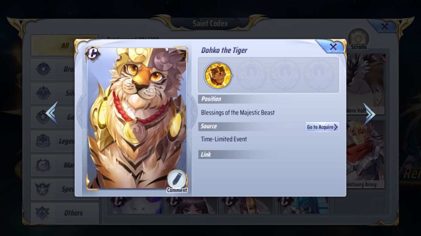 YOU DO NOT INCLUDE DOHKO THE TIGER IN SECOND INSTANCE OF C CHARACTERS AND DOHKO THE TIGER IS NOT AVAILABLE EVERY MONTH IN ATHENA EXPEDITION EITHER?