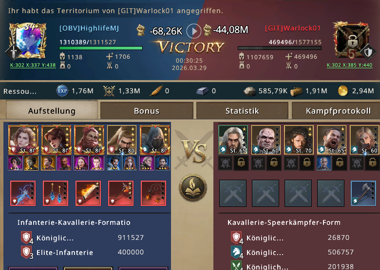 The next opponent was Warlock01 from the alliance GIT, still wearing his research armor—completely unprepared for what was coming. It was a small account, an easy target. HighlifeMJ recognized the opportunity instantly and, without hesitation, unleashed his attack.