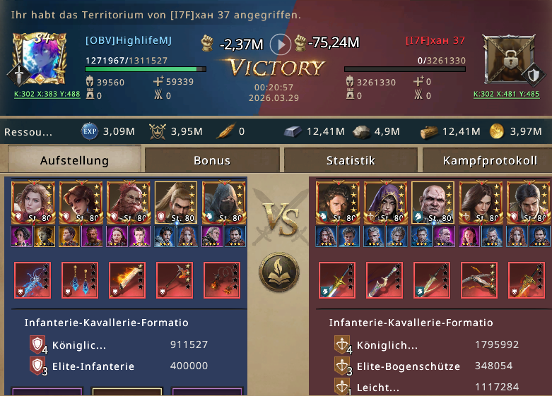 The second attack hit xah 37 even harder. He lost most of his troops in the second attack. HighlifeMJ had even fewer wounded this time, so he decided to change positions again and heal his troops. Immediately afterward, he launched his third and final attack on xah 37’s castle.