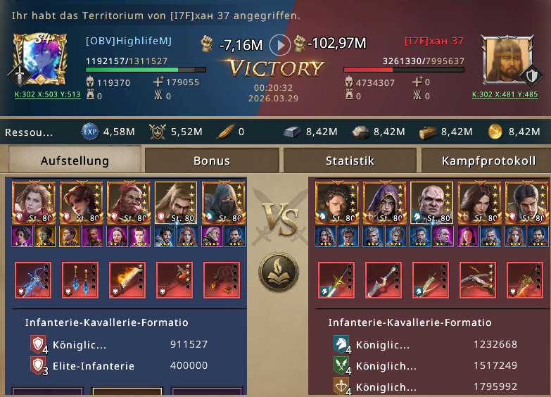 He’s known as a very friendly and helpful guy. But he’s gotten a taste for blood and doesn’t care about merit points. He wants to destroy his enemies. HighlifeMJ noticed that another scout had appeared on K302 and was trying to snatch his targets. So he had to hurry and couldn't afford to waste any time. But his collectors were still out there, and they needed about two more minutes. He decided to speed them back in quickly before it was too late. HighlifeMJ swapped his rebel armor for his war armor. He activated the army size buff, took a Level 60 Lord, polished his rusty sword and armor. He saddled his horses and his dragon. And set off on his journey to Kingdom 302.