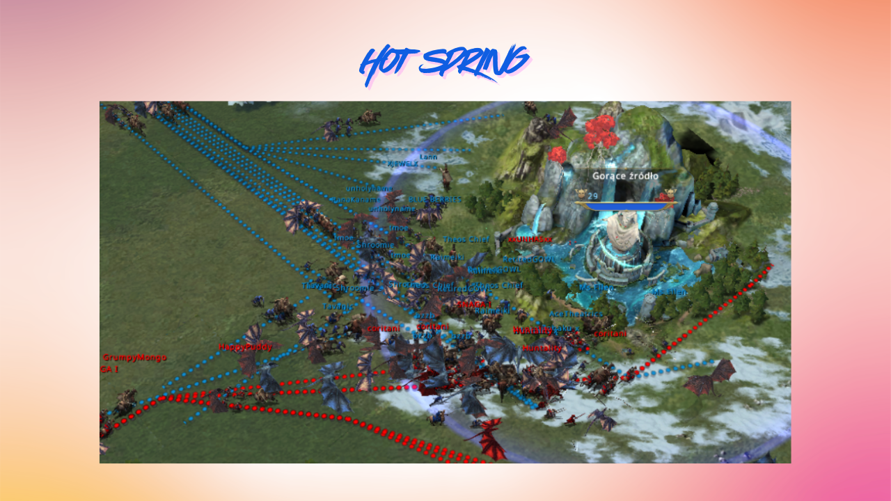At the start of the match between the two factions, both opted for the same strategy: to divide themselves equally between Armory and HotSprings. The equal distribution of troops by the two alliances led to fierce battles at both locations at the start of the match.