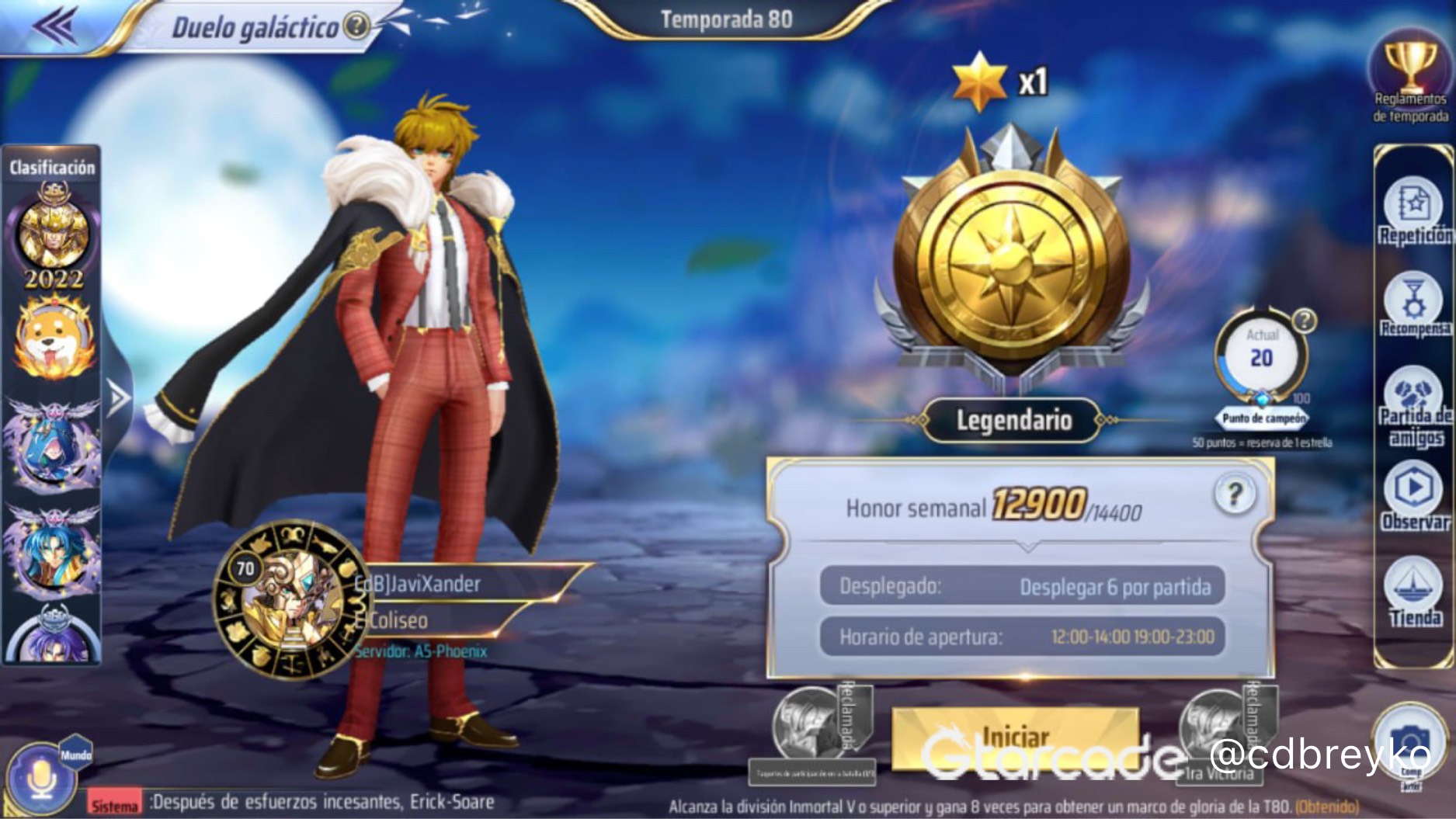 Hago live todos los días en horarios pvp de la tarde principalmente, doy consejos sobre que alineaciones usar, como llegar a legendario siendo relativamente F2P, como conseguir recursos y en donde utilizarlos, entre otras cosas más, follows o cualquier apoyo es siempre bienvenido, espero verlos pronto
