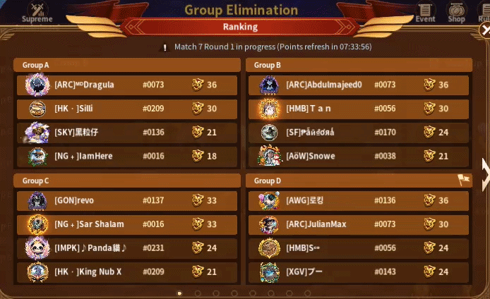The Group Elimination stage of Throne of the Supreme is wrapping up, and the new format has significantly raised the level of competition. With 256 players advancing from the Points Stage instead of 128, the number of groups has doubled, but only two players per group now advance instead of four, effectively cutting advancement odds in half. This spreads top players more evenly across brackets, reducing the chance of “easy groups” and making it much harder for weaker or lower-spending players to sneak through. As a result, most of those players are being eliminated at this stage, while the strongest competitors consistently secure advancement and concentrate the highest-tier rewards among themselves.