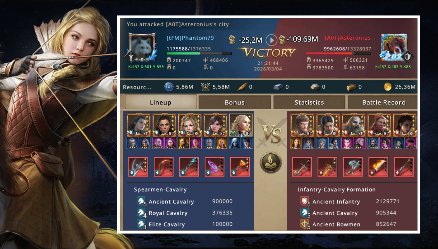 The third attack did not manage to eliminate the remaining troops of Asteronius, but it was the end of the line for me. My men returned, and the report showed more than 3.7 million eliminations. Another strong number against a prepared target.
