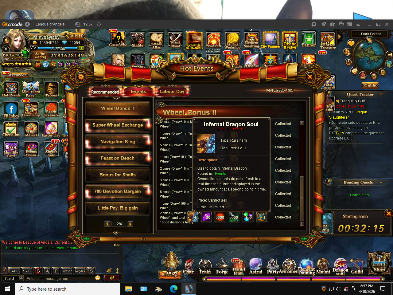 as you can see i collected rewards from wheel bonus ll.... and did not get the infernal dragon soul to unlock the mount.... please fix so that i can get what i paid for.....