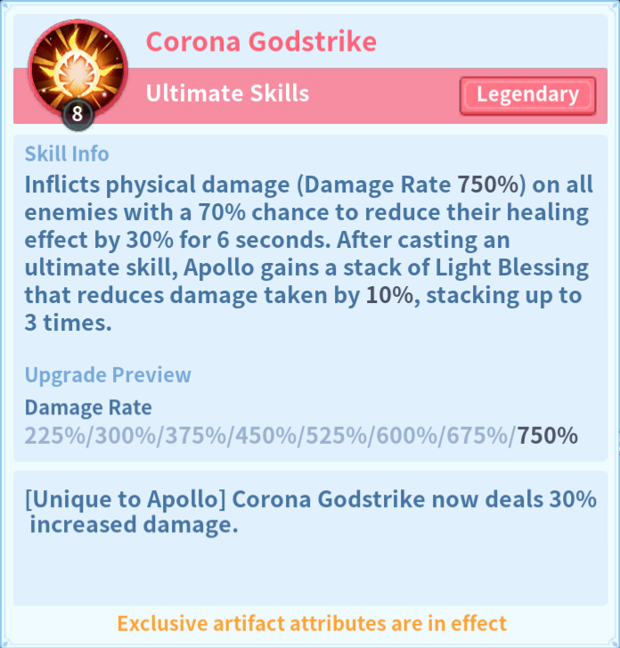 Ever since Medusa was introduced, Apollo has not really been used as much and has become less popular. So when a skill shows up with direct Light Blessing synergy, it is pretty hard not to see it as the game trying to push him back into the spotlight.