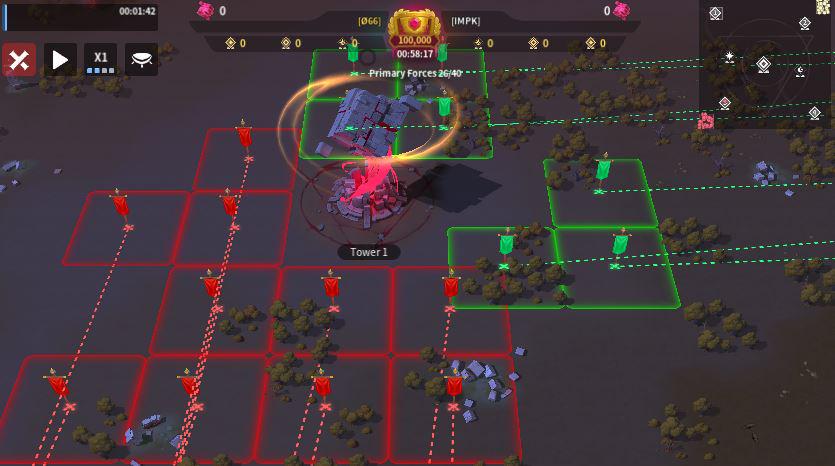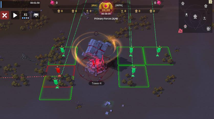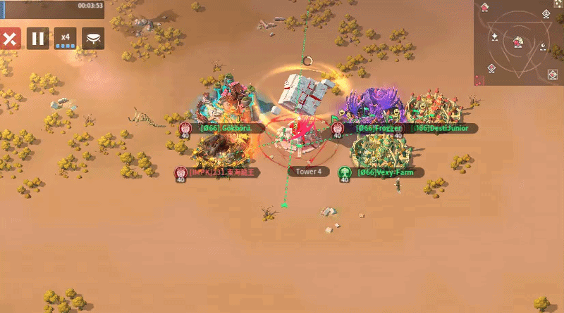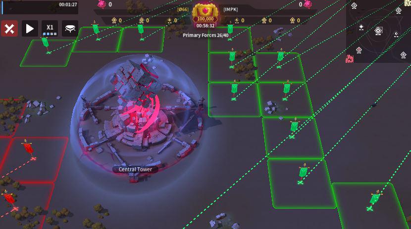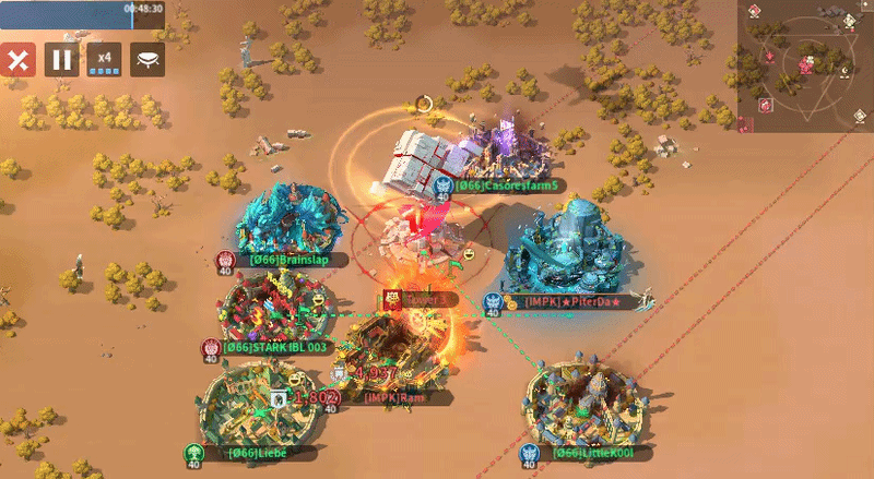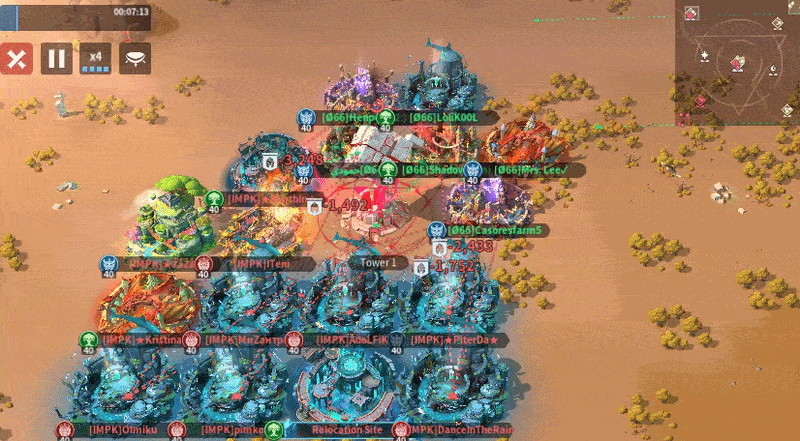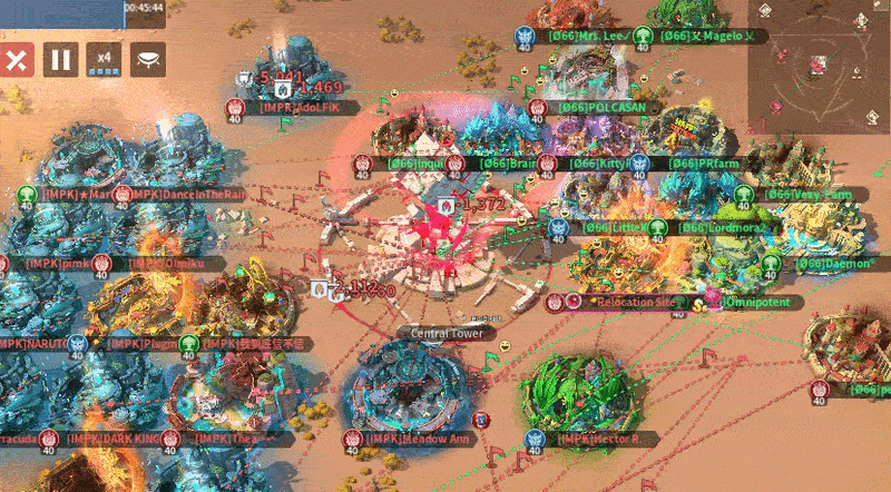 O66 sent 11 players to the Central Tower while IMPK sent 12, giving IMPK a slight numbers advantage. O66’s positioning was inefficient, as they were spread along the top and right sides with many front-row spots left open, which limits their ability to garrison quickly and apply pressure. In contrast, IMPK formed a tighter, more compact grouping in the bottom-left corner, allowing for better support, faster rallies, and more coordinated focus fire. If O66 doesn’t move up and fill those frontline spaces, IMPK should have the edge in controlling the area.