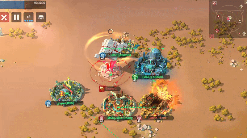 At the 27-minute mark, IMPK’s heavy commitment to the Central Tower left only two guards at Tower 1. Recognizing the opportunity, O66 teleported three players into the area and quickly zeroed one of the defenders. Both teams responded by sending in three more players, but O66 consistently won the engagements. They cleared out all remaining IMPK defenders, took control of the surrounding space, and captured Tower 1 at the 33-minute mark. This swing gave O66 a substantial lead and shifted momentum in their favor.