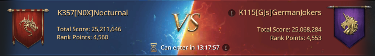 Despite not being enough to qualify to the Ultimate Conquest, the 6th round of season 17 was probably the best round [N0X] played in Siege of Winterfell. Every warrior shown determination and resilience for the whole battle duration and didn't spare any resources in healings to get back into the battle as quickly as possible. They are all leaving this Siege of Winterfell season with a slight bitter taste that they were so close to qualify once again, but the things improve for them every season, so they'll surely be able to qualify on the next season. Until then, see you all on the battlefield for the other events!