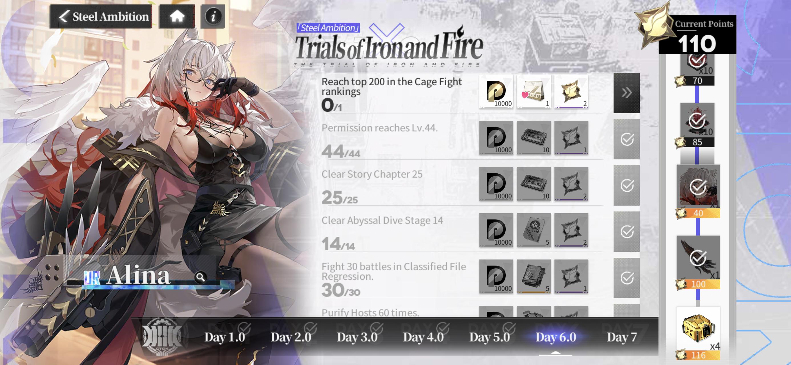 so I do the steel ambition event or something and I think I supposed to get Alina yet I don't have her despite I have claimed her in the event