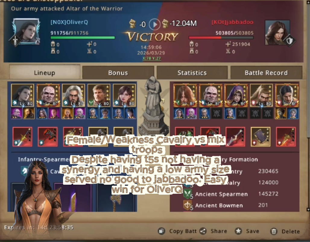 With the Spring fully settling in now in Westeros, the Season 5 of Arena of Honor is quickly approaching its middle now heading towards Round 7. With decent results in the previous round will [N0X]OliverQ be able to get to Glory King ranking and surpass his best performance in Season 4? remains to be seen, for now he's going to focus each round by itself. In the 2 weeks between the rounds prepared as good as he possibly could and while he's not yet able to equip his troops with valyrian steel weapons yet, he's made a great progress and hopefully by the end of this Arena of Honor season he will be able to do so. Preparation took most of the 2 weeks and in before he knew it was already Sunday around noon, so it was time for him to take his troops, commanders and dragons and head to the mercenary camp for yet another round in solo queue. Once he arrived, he headed directly to the registration office to sign the papers as there was very little time left before the matchmaking.