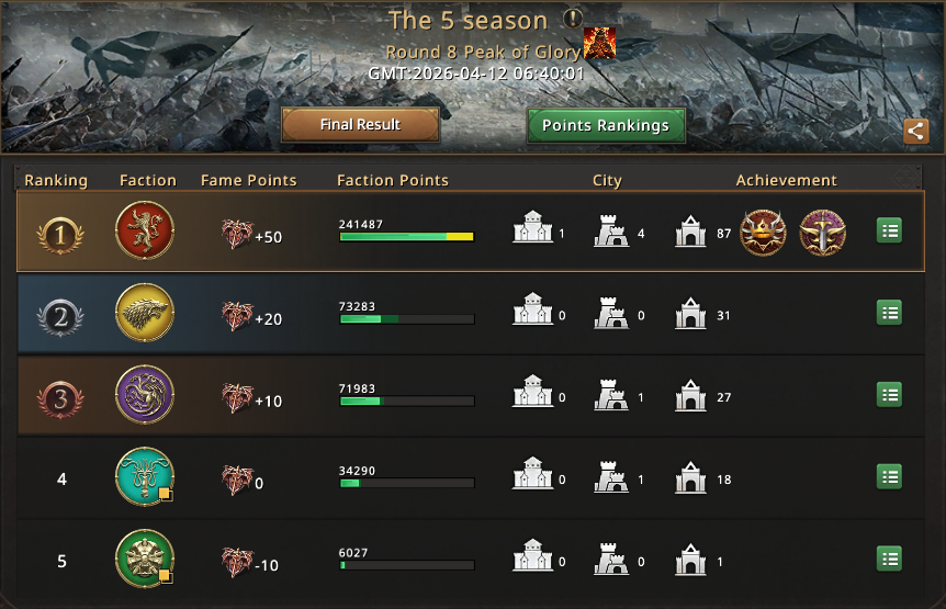 But as soon as the city of glory opened, things took a positive turn for us. While house Targaryen chose to occupy glory city, we took our chance. We continuously took all the necessary alters and by the time they had the glory city, we already had more than 10 alters, being strong enough to rule over the whole map.
