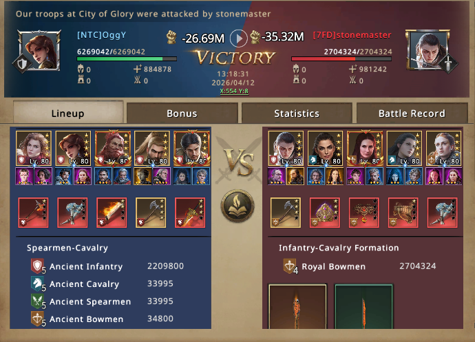 Then it wasn't quite long till our clan castle defeated them in their own base as all the three of our occupied clan's attack priority was set to glory city. Now OggY went on holding the city of glory while others reinforced him. Together it created such an impenetrable defense that even some cavalry and Bowmen rallies couldn't defeat it. One by one after, now we had rest of the watch towers, catapults and Dragonpits. We became victorious after all.