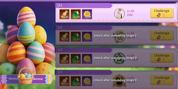 Glorious Challenges are similar to Well of Time campaigns. Players select a team to tackle each challenge, and beating each challenge will net you 50 Gems for first-time clear rewards, Eggs of Mischief, and Original Festival Coins that you can trade in for rewards in the Challenge Shop. Completing each level unlocks a raid feature. Subsequent raids will earn you Eggs of Mischief and Original Festival Coins. There are two modes. The Normal Mode is available at the start of the event and goes up to level 16. The levels are extremely easy, and most players should not have much difficulty clearing them. The Hard Mode unlocks after three days and will be similar to the Elite Campaigns. You get five free attempts a day, and it refreshes every day at 0 UTC. You can also purchase up to 100 additional attempts in the shop for 8,000 Gems. Players with the fastest clear times will appear on the level’s ranking ladder. For the first three days, you should purchase enough additional attempts to net you at least enough coins to purchase everything you want in the Challenge Shop since each item has a daily purchase limit of one.