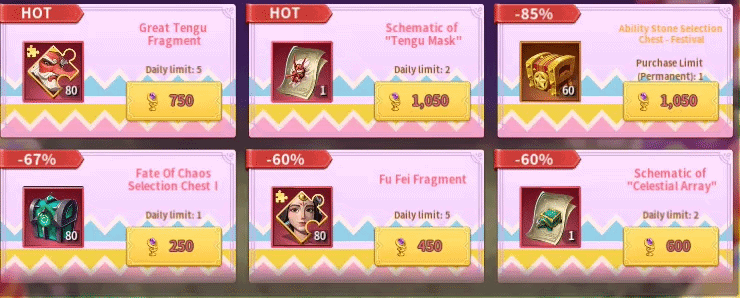 Every Chaos Immortal except Loki, Poseidon, Athena, and Wukong cost 750 grails. Their respective exclusive artifacts cost 1,000 grails. Medusa’s artifact cost slightly more at 1,100 grails. Loki, Poseidon, Athena, and Wukong are in the Fate of Chaos Selection Chest I, which costs only 250 grails but has a daily purchase limit of one. This is an extremely good chance for players to get those shards for cheap. Fu Fei Fragments are only 450 grails. Great Tengu Fragments cost 845 and his artifact cost 1,100 grails. The shop also features an Ability Stone chest that costs 1,050 grails and contains Siren’s Gaze, Smite, Storm Strike, and Implosion. Personally, I would skip that chest. Players can also purchase lesser rewards like Equipment Forging Stone Random Chests, Stellar Core Crystals, Holy and Shadow Selection Chests, their artifact chests, and Random Territory Decoration Fragment Chests. The grails carry over to the next event as well. This is a great chance for low-spenders and free-to-play members to get cheap Chaos Immortals.