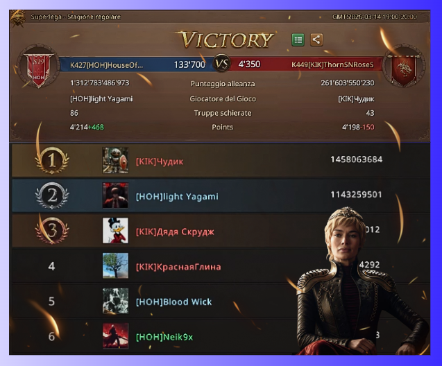 “We expected a match against a different opponent, but today we were lucky” said the leadership members at the end of the clash “This victory puts us in a high position getting closer to the top 12 alliances of the seven kingdoms, and if we win the last two matches, we will certainly qualify for the playoffs, see you on the battlefield of the fifth round!” was the continuation of the message encouraging their allies before returning to their kingdoms.