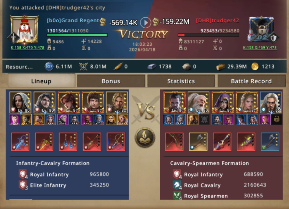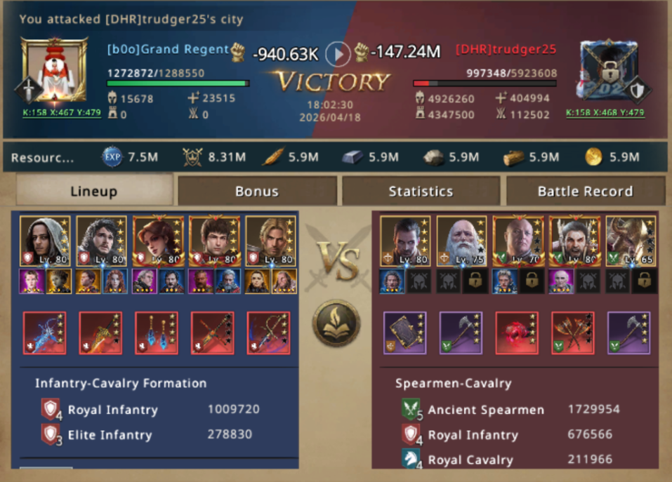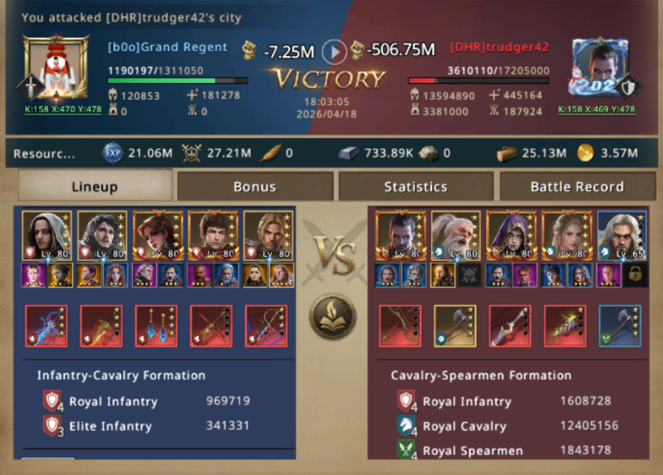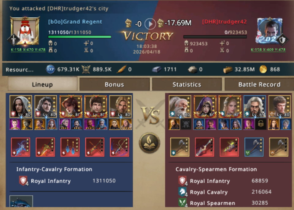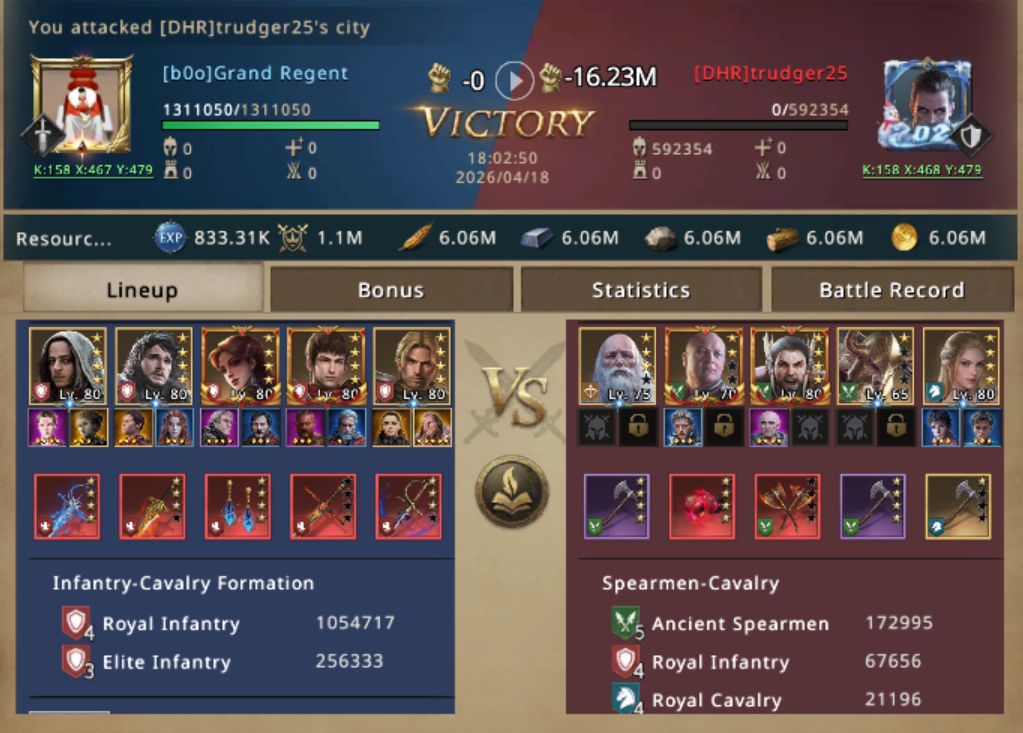 Aware that a target like this was a ticking clock, she repositioned and launched. The first clash went exactly as predicted, targeting trudger25 first, Her infantry pushed through the front like a tide, exploiting the messy composition behind the gates and capturing their lord in a single hit.