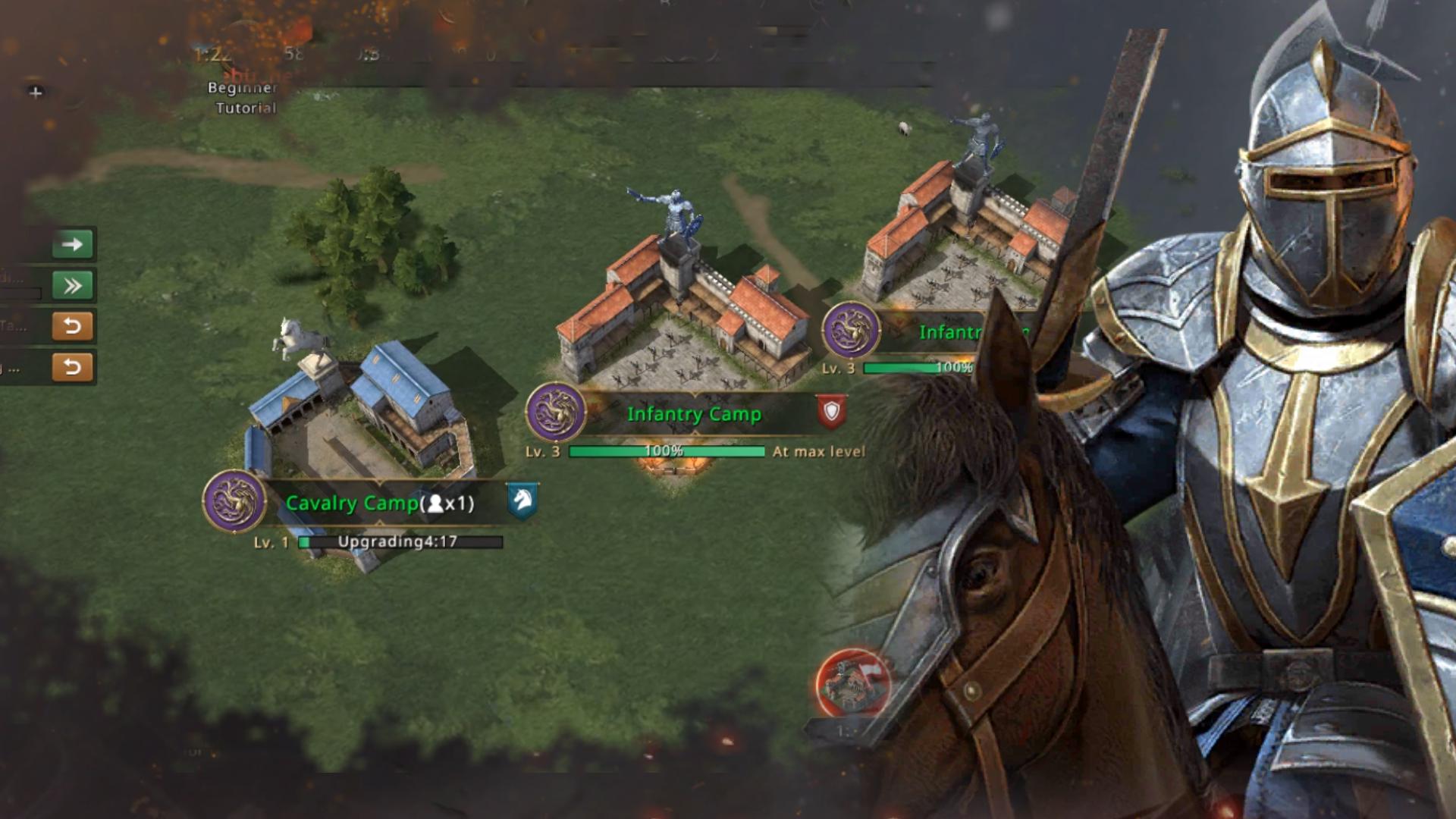As he had expected, they finished building the spear camps faster than the rest. Although he was always the one to take the House that was captured at the start—in this case, Tyrell, because they are the Targaryens—he chose another teammate for that role, a spearman, who could better withstand enemy attacks, so that he, along with Chayle and Kratos, would be dedicated to conquering and building the strongholds of the newly captured House. He indicated that the first line should be cavalry, and the second should hold trading posts to generate more points per minute.