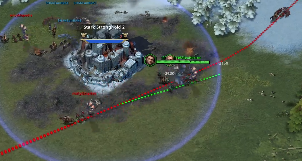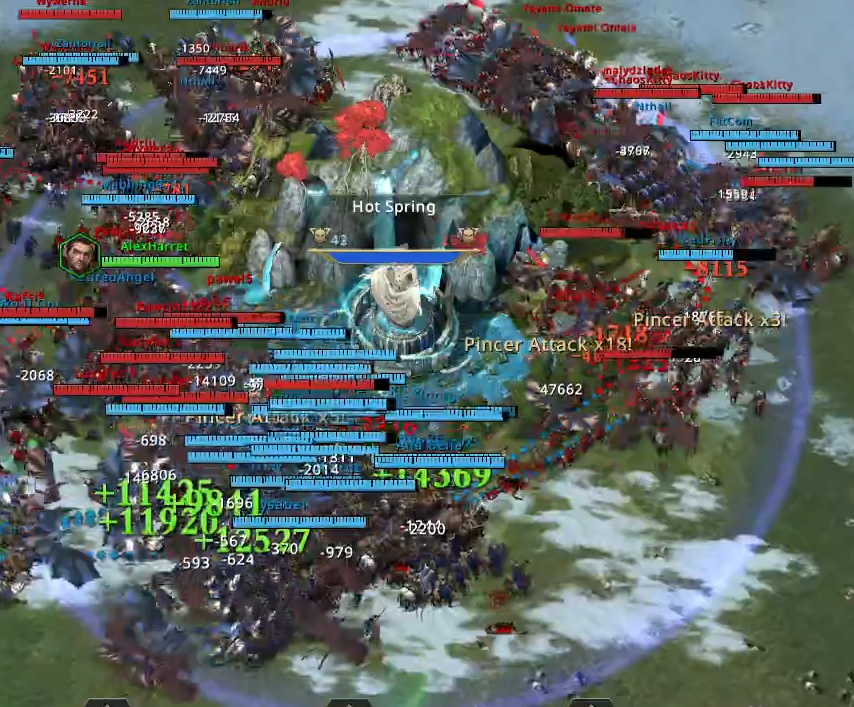 Alex was smart and cracked the strategy [tSB] took and decided to adjust, because if nothing happening on one side of the map - there is a fight at another, you simply need to look! So he abandoned the Hotspring side and marched towards the Outpost of the heavy Armory side. He got some kills and got some wounds, and when the fight was over he called the army's to it's base, reconstructed them and sent on the teleport to the closest fight.