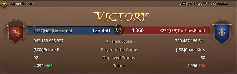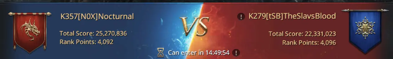 Meanwhile it was already mid season for [N0X] and their fifth battle of the season. By now they experienced both failure and a victory and were in all arms once again. This time [N0X] were matched against [tSB], TheSlavsBlood alliance wasn't an alliance you would consider being on top of the rankings, yet they were a close match to [N0X] with only 3M score difference.