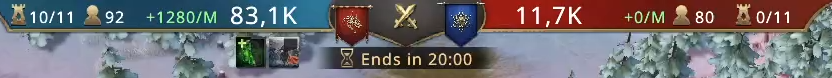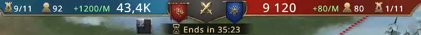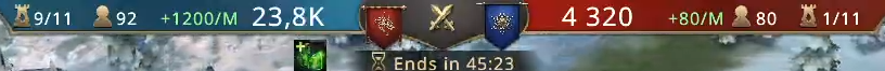 few minutes into the battle and many wounded soldiers were healed and sent back on the fighting track again. Very soon Strongholds are opening and it's important to control as many as you can to be able to teleport on them from the base and to deny an opponent army's sending a reinforcements this exact way.